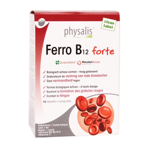 Compleet ijzercomplex met actieve B-vitaminesVitamine B12 is goed voor het concentratievermogenHooggedoseerd voedingssupplementPhysalis Ferro B12 Forte is een hooggedoseerd, compleet ijzercomplex met actieve…