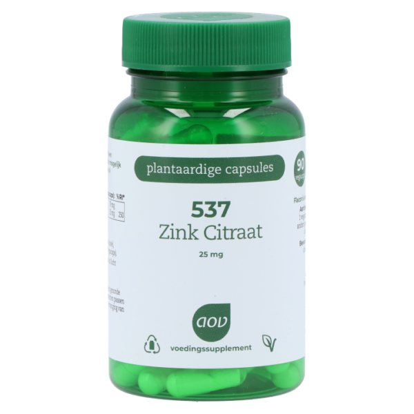 Vegacapsules met 25 mg zinkZink ondersteunt het immuunsysteemZink draagt bij tot een normale vruchtbaarheid en voortplantingAOV 537 Zink Citraat bevat vegacapsules met 25 mg zink per capsule.