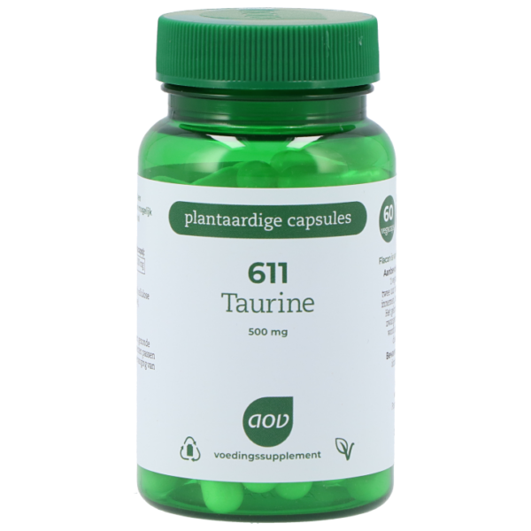 Bevat 500 mg taurine per vegacaps Plantaardige capsules met zo min mogelijk hulp- en vulstoffen Vrij van geur-, kleur- en smaakstoffen611 Taurine bevat 500 mg taurine per vegacaps.