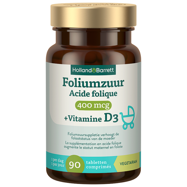 Holland & Barrett Foliumzuur 400mcg + Vitamine D3 - 90 tabletten