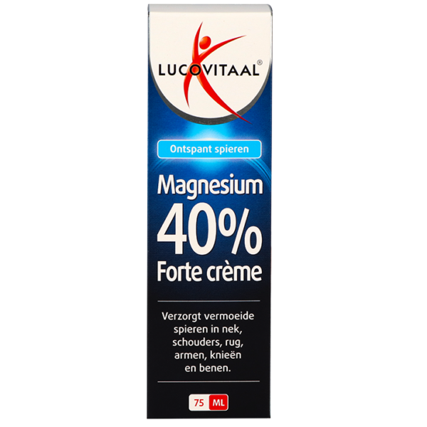 Magnesium crème voor de huid40% magnesiumchlorideVoor sport en vrije tijdMagnesium crème van Lucovitaal verzorgt vermoeide spieren in de nek, schouders, rug, armen en benen.