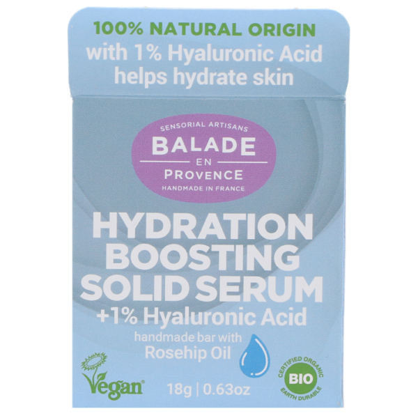 Hydraterend serum in vaste vormHandgemaakt in FrankrijkVegan, biologisch en parfumvrijHydrateer je huid met het heerlijk Hydration Boosting Solid Serum van Balade en Provence.