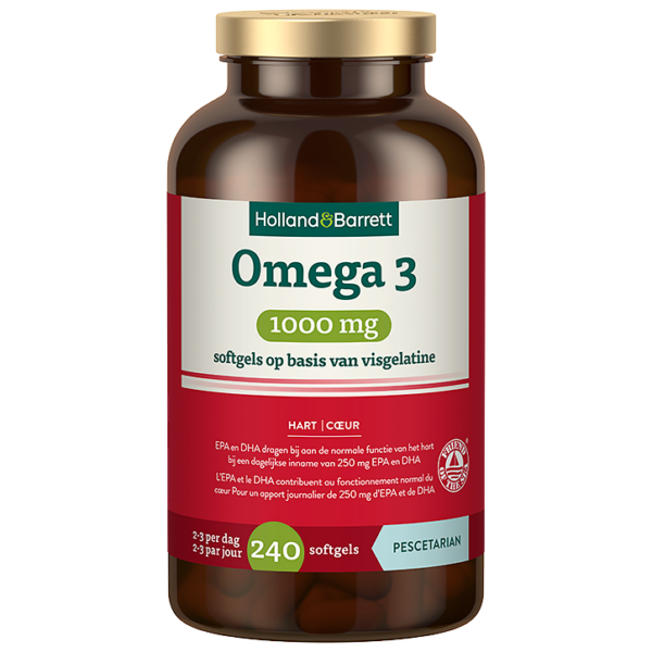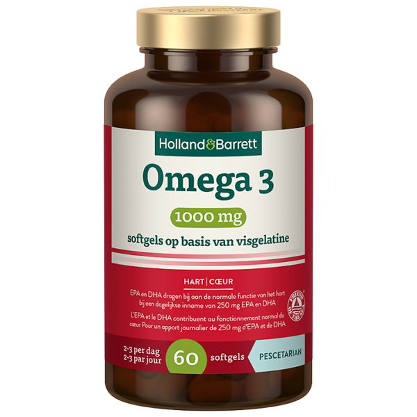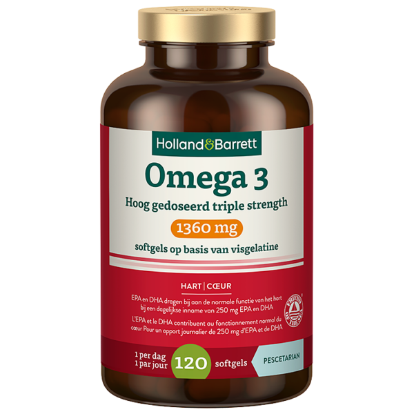 Omega 3-voedingssupplement met hoogwaardig EPA DHAEPA en DHA dragen bij aan de instandhouding van de normale bloeddruk en goed voor het hart*Per softgel 1360 mg visolie waarvan 950 mg omega 3-vetzurenHolland Barrett…