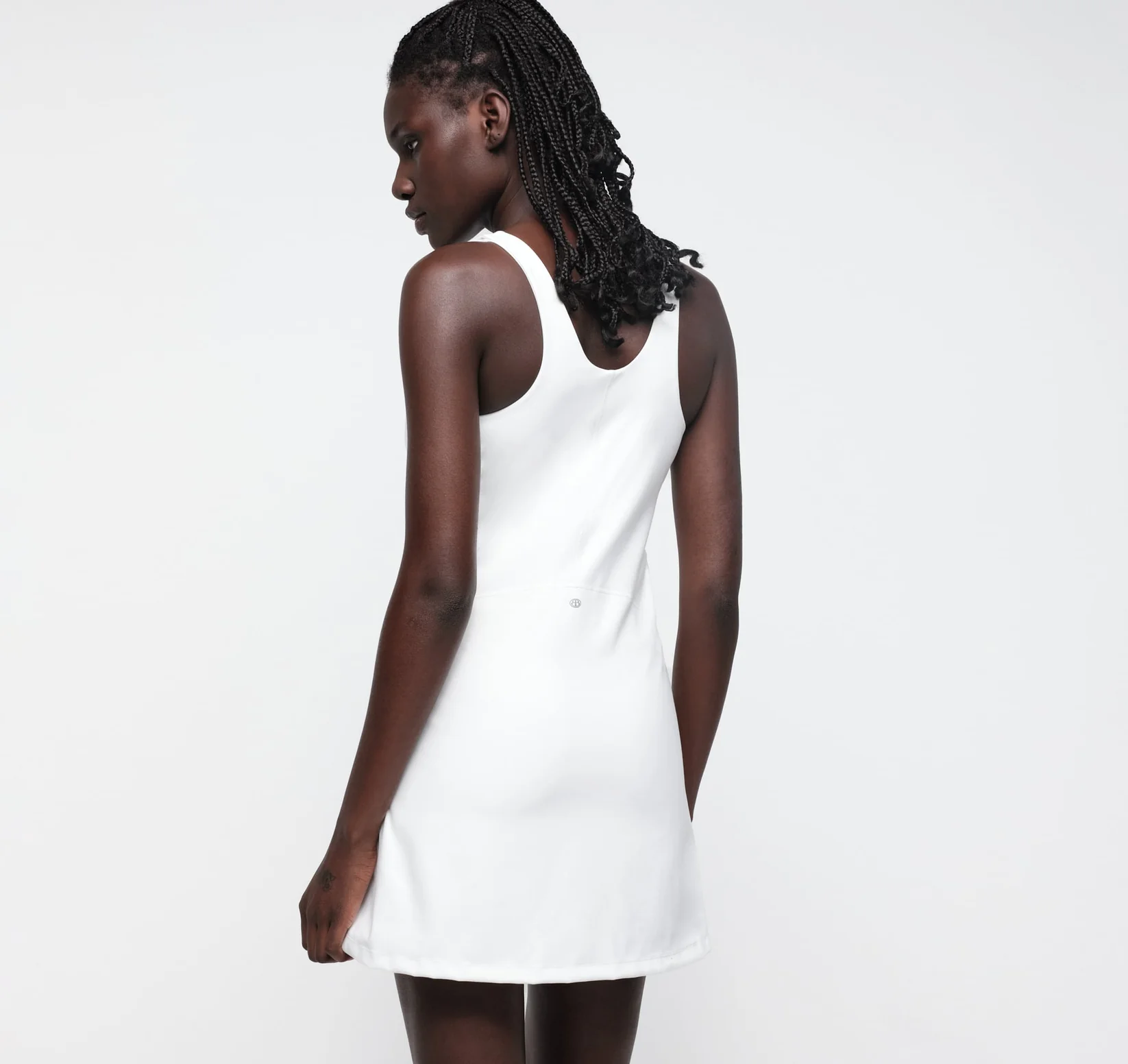 De stof is zacht, rekbaar en gemaakt met 60% GRS-gecertificeerd gerecycled nylon, wat zorgt voor een duurzaam en ademend materiaal dat vocht afvoert en je koel houdt tijdens beweging. Dankzij de stevige kwaliteit behoudt de jurk ook na veel dragen en wassen zijn vorm.