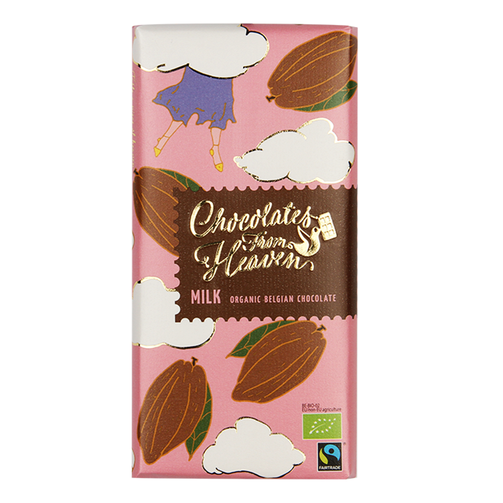 Hemelse zachte melkchocolade FairTrade en biologisch Lekker voor bij de koffie of zomaar! Ook leuk als cadeautje De zachte smaak van deze melkchocoladereep van Chocolates From Heaven zal je doen wegsmelten! Voor deze hemelse chocolade worden enkel zorgvuldig gekozen biologische ingrediënten gebruikt, wat deze ‘standaard’ melkchocoladereep toch niet zo standaard maakt! Chocolates From Heaven chocoladerepen worden vervaardigd met respect voor de natuur en respect voor de cacaoboeren. Goed voor jou en ook goed voor elkaar! Door een eerlijke prijs te betalen voor de cacao, suiker en waardevolle ingrediënten, helpen we samen de boeren in het Zuiden.