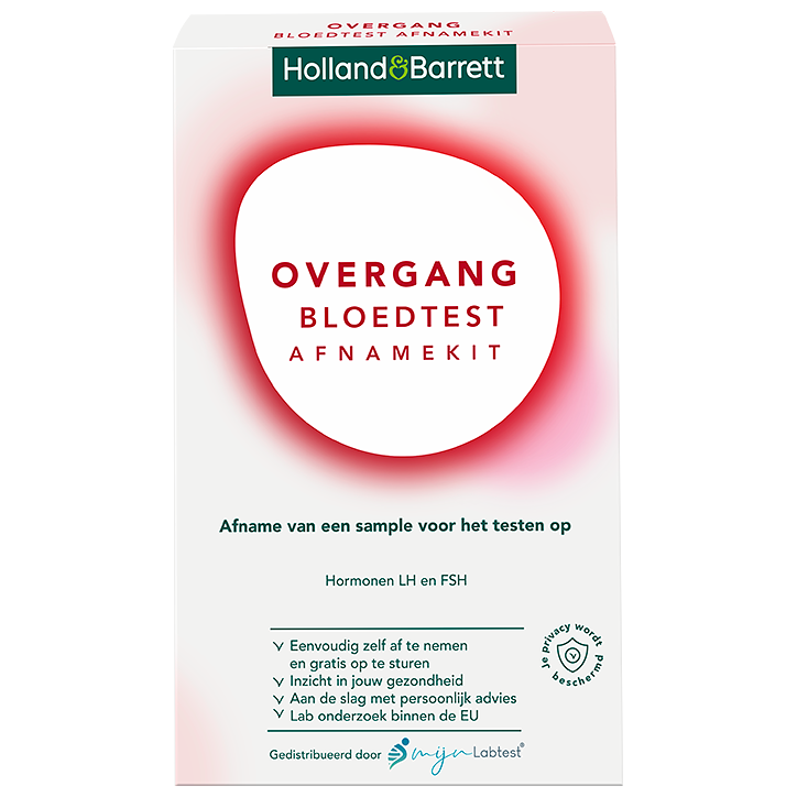 Zelf af te nemen overgang bloedtest die je inzicht geeft in jouw LH- en FSH-waardenEenvoudig thuis af te nemen, met de uitslag binnen 6 werkdagen via een beveiligd bericht in je mailGeschikt voor vrouwen die vermoeden dat ze in de overgang zijnSymptomen van de overgang: opvliegers, stemmingswisselingen, onregelmatige menstruatiecyclus, nachtzweten, droge slijmvliezen, verminderde zin in seks, hoofdpijn, slaapproblemen en pijnlijke gewrichten*De hormonen LH (luteïniserend hormoon) en FSH (follikelstimulerend hormoon) worden door de hypofyse, een kliertje in de hersenen, aangemaakt en reguleren samen de menstruatiecyclus. FSH stimuleert de rijping van eicellen en LH zorgt voor de eisprong. Tijdens de overgang zijn de waarden van zowel LH als FSH sterk verhoogd. Een LH- en FSH-test kan daarom inzicht geven in je hormoonspiegels en overgangsverschijnselen.Ben jij benieuwd of je in de overgang bent? Symptomen die mogelijk bij een overgang kunnen horen, zijn onder meer opvliegers, stemmingswisselingen, onregelmatige menstruatiecyclus, nachtzweten, droge slijmvliezen, verminderde zin in seks, hoofdpijn, slaapproblemen en pijnlijke gewrichten.* Bij Holland Barrett kun je nu een overgang test kopen. Via deze overgang bloedtest, die je eenvoudig thuis kunt uitvoeren, krijg je inzicht in de hoeveelheid LH en FSH in het bloed. Deze test wordt in de volksmond ook wel eens een ‘menopauze test’ genoemd, maar omdat de menopauze eigenlijk puur het moment van de laatste menstruatie is, is ‘overgangstest’ een correctere benaming. Via deze test krijg je namelijk een indicatie of je al dan niet in de overgang bent.Je ontvangt een afnamekit met alle materialen voor het afnemen en retour sturen van je sample. Belangrijk: Heb je nog een menstruatiecyclus? Neem je sample dan af op dag 2-6 van je menstruatie. Heb je geen cyclus of twijfel je door bijvoorbeeld tussentijdse bloedingen of het uitblijven van de menstruatie? Neem je sample dan op een willekeurige dag af. Let op: neem je sample alleen af van maandag t/m donderdag en niet op of de dag voor een feestdag.Je sample wordt onderzocht in een ISO15189-gecertificeerd Europees laboratorium en gevalideerd door een biochemicus en arts. Zes werkdagen na afname ontvang je via een beveiligd bericht jouw persoonlijk rapport met de resultaten, een uitgebreide uitleg en persoonlijk advies.Vragen over deze overgangstest? Bekijk onze veelgestelde vragen verder op deze pagina of contacteer onze klantenservice. Voor deze testen werkt Holland Barrett samen met Mijnlabtest, een ervaren team dat bestaat uit professionals die constant bezig zijn met het optimaliseren en innoveren op basis van wetenschappelijk onderzoek.Dit is een medisch hulpmiddel in de vorm van een procedure pack.*Als je deze symptomen ervaart, raadpleeg dan ook altijd een dokter.