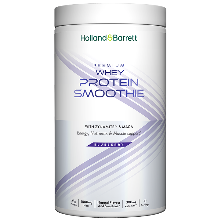 Whey-smoothie met 28 gram eiwit per portie ter ondersteuning van spiergroei Met Zynamite™️ mangobladerenextract, maca actieve B-vitamines Ideaal voor gebruik vóór of na je workout Boost je dag met de voedzame Whey Protein Smoothie van Holland Barrett. Deze unieke formule combineert 68% hoogwaardige wei-eiwitten met aroma’s van natuurlijke oorsprong en actieve ingrediënten zoals Zynamite™️ (mangobladerenextract), maca en een uitgebalanceerd complex van B-vitamines. Perfect geschikt voor sporters die op zoek zijn naar energie (dankzij de B-vitaminen), spierherstel (dankzij de eiwitten) en voedingsondersteuning in één shake. Elke portie (50 gram) levert 28 gram eiwit, 1000 mg maca, 300 mg Zynamite™️ én een mix van vitamines B1, B2, B3, B5, B6, B7, B9 en B12 die bijdragen aan een normaal energiemetabolisme en vermoeidheid helpen verminderen. Gebruik: Meng 1 maatschep (50 gram) met 400 ml water of plantaardige melk. Goed schudden en bij voorkeur gebruiken vóór of na je training. De verpakking bevat ongeveer 10 porties.