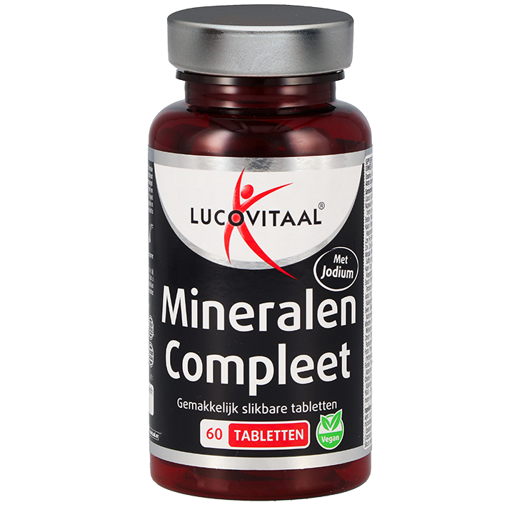 Mineralencomplex met een breed spectrum aan essentiële mineralen in één tabletBevat 15 verschillende mineralen ter ondersteuning van diverse lichaamsfunctiesGeschikt voor veganisten, makkelijk slikbare tablettenLucovitaal Mineralen Compleet is een uitgebreid supplement dat een scala aan essentiële mineralen bevat, speciaal samengesteld om verschillende lichaamsfuncties te ondersteunen. Elke tablet bevat onder andere calcium voor het behoud van sterke botten en tanden, magnesium voor de ondersteuning van de spierfunctie en zink, dat bijdraagt aan een gezond immuunsysteem. Met jodium, een belangrijk mineraal dat essentieel is voor de productie van schildklierhormonen, vormt deze formule een solide aanvulling op je dagelijkse voedingsbehoeften. De toevoeging van ijzer draagt bij aan het proces van celvernieuwing en de vorming van rode bloedcellen en hemoglobine. De tabletten zijn makkelijk in te nemen en ontwikkeld om goed opneembaar te zijn. Geschikt voor dagelijks gebruik en ontworpen met een vegan levensstijl in gedachten. Neem twee tabletten per dag met water. Met een verpakking van 60 tabletten heb je genoeg voor een volledige maand. Lucovitaal Mineralen Compleet is jouw dagelijkse ondersteuning voor een goed gebalanceerd dieet, zorgvuldig samengesteld om te voorzien in jouw minerale behoeften.
