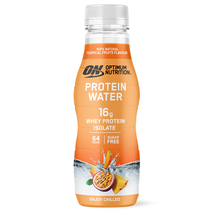Verfrissende eiwitdrank met 16 gram whey protein isolate Suikervrij en laag in calorieën (64 kcal per fles) Met tropische fruitsmaak Optimum Nutrition Protein Water Tropical Fruits is een heldere, verfrissende eiwitdrank die ideaal is voor sporters en actieve mensen die hun eiwitinname willen verhogen zonder een romige shake te drinken. In plaats van een melkachtige structuur heeft dit protein water een frisdrankachtige textuur met een tropische fruitsmaak. Elke fles bevat 16 gram whey protein isolate, een hoogwaardige en snel opneembare eiwitbron. Eiwitten dragen bij tot de instandhouding van de spiermassa en ondersteunen snel herstel van de spieren na training. Dankzij de suikervrije samenstelling en het lage caloriegehalte past deze drank goed binnen elke levensstijl. Optimum Nutrition levert al meer dan 30 jaar en in meer dan 90 landen over de hele wereld de hoogste kwaliteit in post-workout herstel, pre-workout energie en on-the-go sportvoedingsproducten. Ze houden zich aan de hoogste productienormen, zodat jij het volledige potentieel van je lichaam kunt benutten.