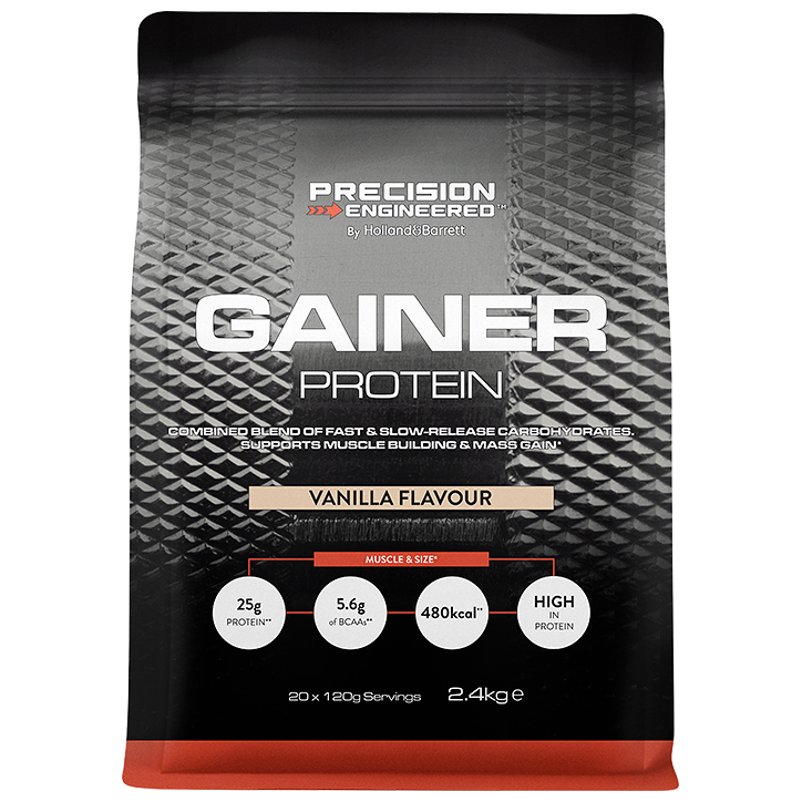 Hoogwaardig spieropbouwend eiwitsupplement met vanillesmaak Rijk aan eiwitten en BCAA’s, ondersteunt spiergroei en -herstel Bevat een combinatie van snelle en langzame koolhydraten Ondersteun je (kracht)training met Precision Engineered Gainer Protein in heerlijke vanillesmaak. Dit geavanceerde eiwitsupplement is ontworpen voor atleten die spiermassa willen opbouwen en hun energieniveau willen ondersteunen tijdens intensieve trainingssessies. Met 25 gram eiwit per portie, 5,6 gram BCAA’s, 68 gram koolhydraten (waarvan 23 gram suikers) en 480 calorieën, biedt het de noodzakelijke voedingsstoffen voor spierherstel en groei. De unieke formule combineert snelle en langzame koolhydraten die zorgen voor een gestage afgifte van energie, ideaal voor langdurige prestaties en herstel. De zachte vanillesmaak zorgt voor een heerlijke ervaring, waardoor je je eiwitdoelen gemakkelijk en lekker kunt bereiken. Gebruik: Meng vier maatschepjes (120g) met 300ml water of volle melk en schud goed of gebruik een elektrische blender voor het beste resultaat. Neem tot drie porties per dag, vooral na de training, om maximale spiergroei en herstel te ondersteunen.