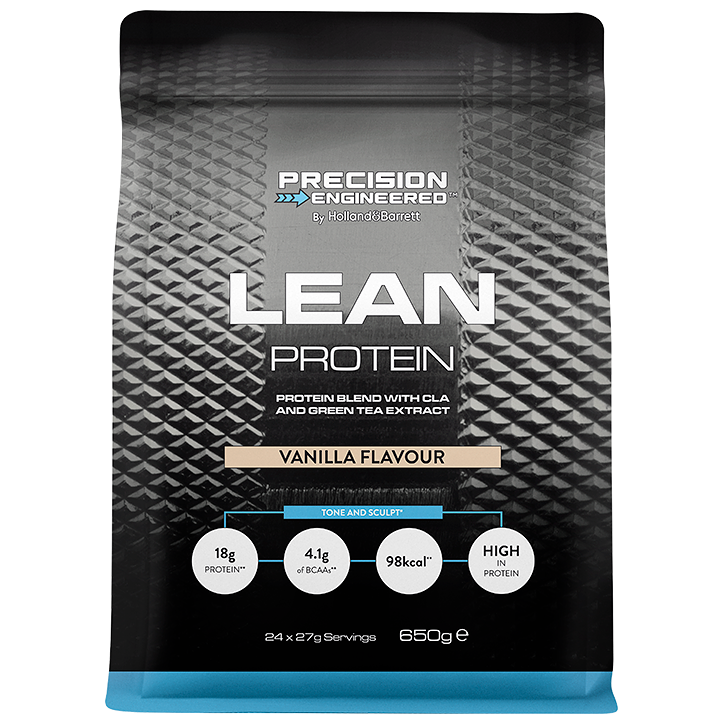 Eiwitpoeder met CLA en groene thee-extract Elke portie levert 18 gram eiwit, 4,1 gram BCAA’s, en slechts 98 calorieën om je fitnessdoelen te ondersteunen Met een zachte vanillesmaak voor een heerlijke shake Sport je om je ideale gewicht te bereiken? Precision Engineered Lean Protein is ontworpen om je te helpen bij het bereiken van jouw sportdoelstellingen. Deze formule combineert eiwit met CLA (geconjugeerd linolzuur) en groene thee-extract. Ideaal voor gebruik na de training of op elk moment van de dag wanneer je een eiwitboost nodig hebt. Geniet van de zachte vanillesmaak en krijg per portie 18 gram eiwitten en 4,1 gram BCAA’s binnen. Dat alles met slechts 98 kcal per portie. Gebruik: Meng een schepje (27g) met 200ml water of melk voor een snelle shake. Perfect als maaltijdvervanger of als een voedzaam tussendoortje.