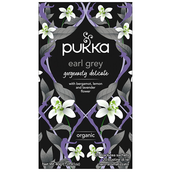 Verfrissende thee met bergamot, lavendel en citroen Afkomstig uit de oudste theetuinen van India Kom met deze thee de dag door! De kruiden van Gorgeous Earl Grey van Pukka komen uit de oudste theetuinen van India. Geniet van de verfrissende smaak van bergamot, de delicate geur van lavendel en het subtiele extra’tje van citroen. Deze thee helpt je door de dag!