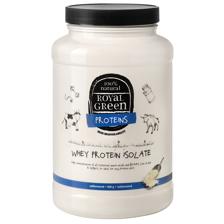 100% Pure wei-eiwit isolaatLaag in koolhydraten en vetPerfect te mixen met water, melk of yoghurt voor een heerlijke eiwit shakeOndersteunt de spierkracht, -groei en -herstelRoyal Green Whey Protein Isolaat bevat 100% pure wei-eiwit isolaat. De eiwitpoeder heeft het laagste gehalte aan koolhydraten, vet en suikers en is daarmee ideaal voor elk eiwitrijk dieet. De wei-eiwit van Royal Green is 100% natuurlijk en vrij van kunstmatige zoet- en smaakstoffen zoals aspartaam en sucralose.Wei eiwit is een natuurlijk bij-product dat ontstaat uit de productie van kaas en koemelk. Het heeft een maximale biologische beschikbaarheid en bevat alle essentiële aminozuren. Wei-eiwit is van nature rijk aan de essentiële aminozuren Leucine, Isoleucine en valine (BCAA’s). Deze aminozuren zijn belangrijke componenten van spierweefsel.Eiwitten dragen bij tot de groei van de spiermassa en het herstel van de spieren na fysieke inspanning. Ideaal voor jouw actieve levensstijl!