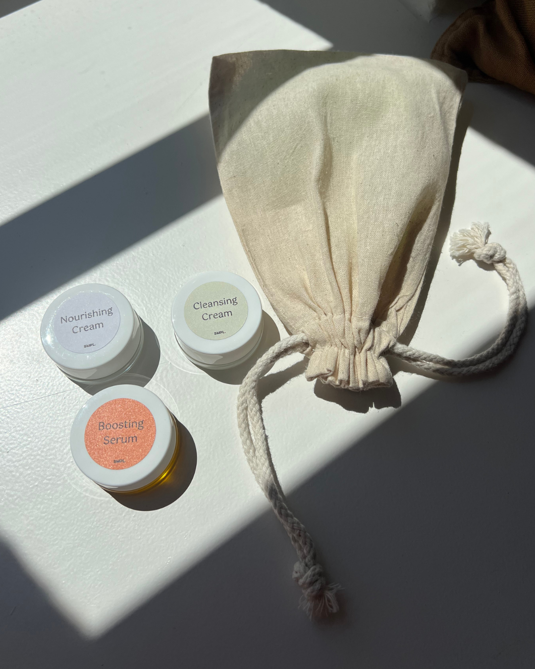 Ben je benieuwd wat onze natuurlijke huidverzorging voor jouw huid kan doen? Ga voor de sample set (geen verzendkosten). Drie samples voor een allround gezichtsverzorging: Reinigingscrème (5ml), Voedende Dag- en Nachtcrème (5ml) en het Boosting Serum (5ml). Met de inhoud kun je ongeveer 2 weken vooruit en zul je de eerste tekenen van huidverbetering al ervaren. Mark our words!