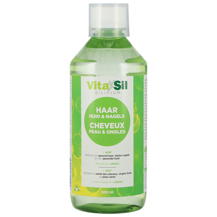 Supplement(drank) op basis van brandnetelSpeciaal voor gezonde huid, haar en nagels*Brandnetel wordt traditioneel gebruikt voor een normale huid*Vitasil Haar Huid Nagels is een supplement op basis van brandnetel (Urtica). Brandnetel bevat van nature vitaminen en mineralen bevat die goed zijn voor je huid, haar en nagels.* Zo bevat brandnetel vitamine C, magnesium, kalium, selenium en zink. De vitamine C in brandnetel is goed voor je immuunsysteem en ondersteunt je botten. Verder bevat brandnetel silicium, een stof die van nature in je lichaam aanwezig is.Brandnetel wordt traditioneel gebruikt om huid, haar en nagels te ondersteunen.* Met Vitasil Haar Huid Nagels maak je optimaal gebruik van de kracht van brandnetel. Neem ‘s morgens in op een nuchtere maag en houd je aan de aanbevolen dosering. Voor een optimaal resultaat wordt aangeraden om Vitasil Haar Huid Nagels voor minimaal 3 maanden in te nemen.*Gezondheidsclaims in afwachting van goedkeuring door de Europese Commissie.